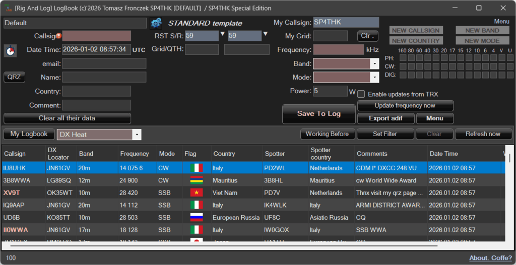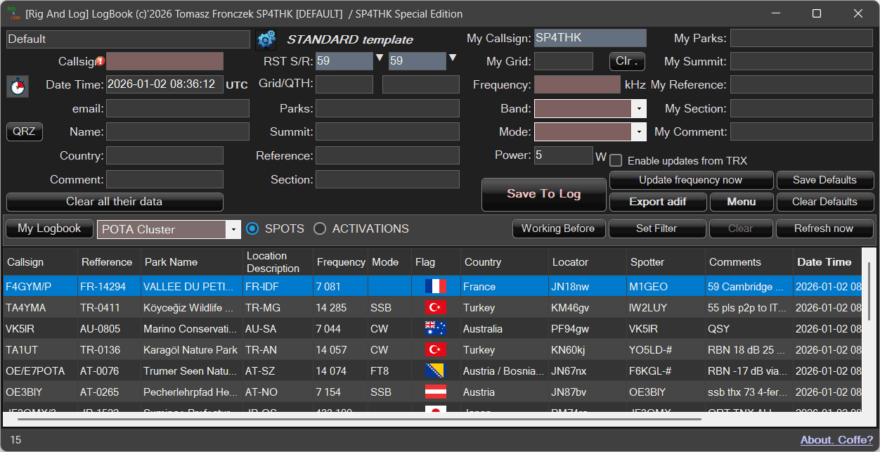 The idea behind the creation of the log was field activations in various programs. For now, I have experience with the POTA program, so other programs may still require testing and corrections.