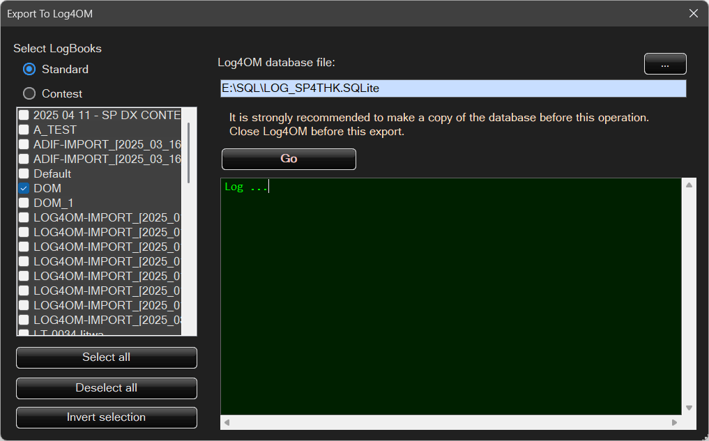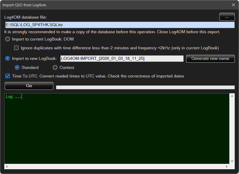 Here you can import logs from or export logs to the database of another logging program, Log4OM, directly.