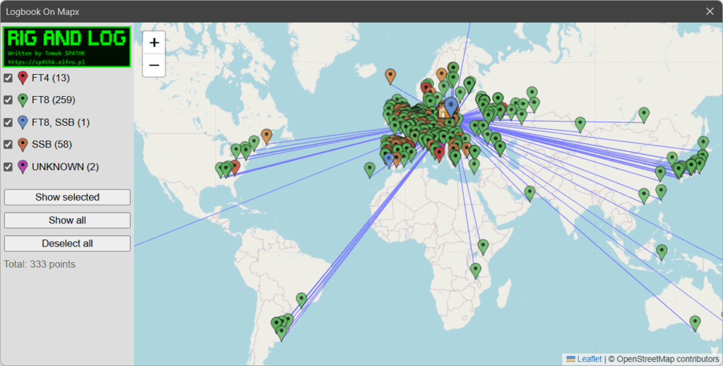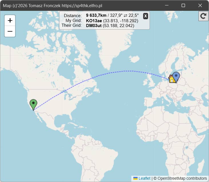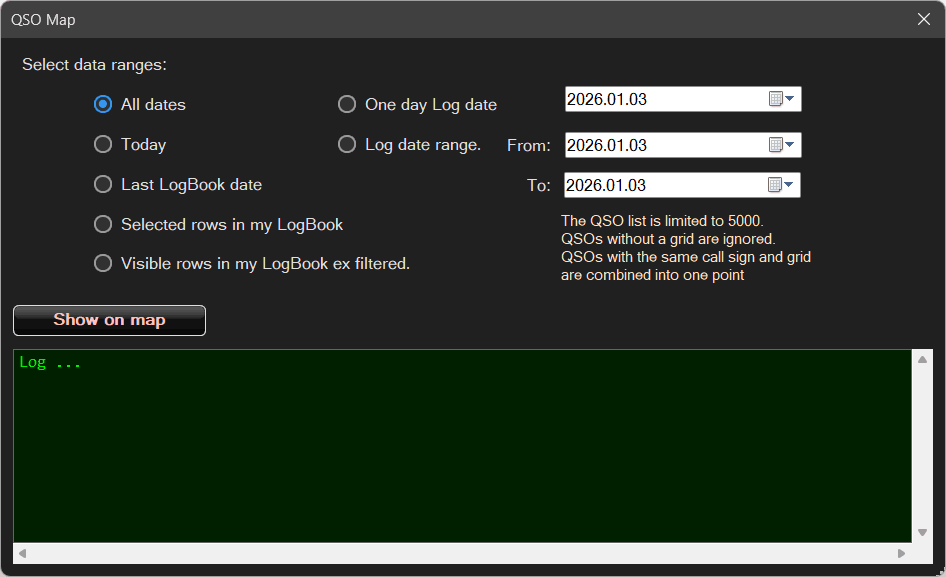 - Single point – when data for only one callsign is available (one grid), or when you right-click a selected grid in the Logbook.