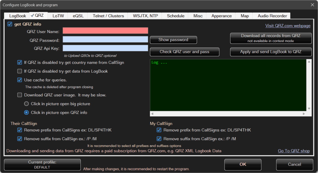 To make this possible, the user must have an active QRZ subscription and generate an API key on the QRZ website.