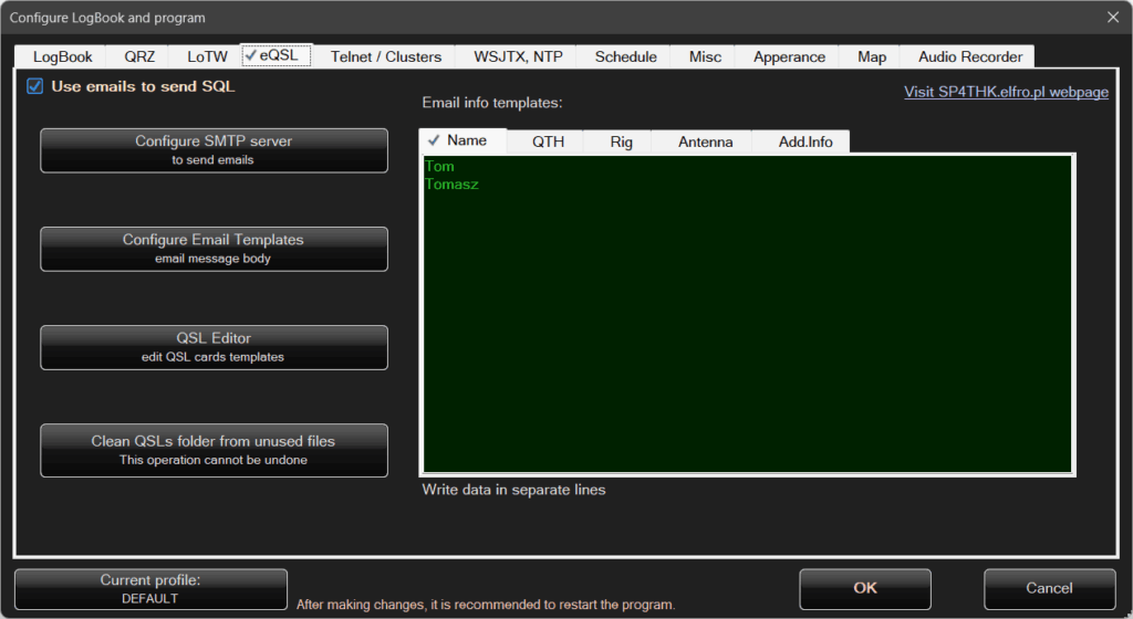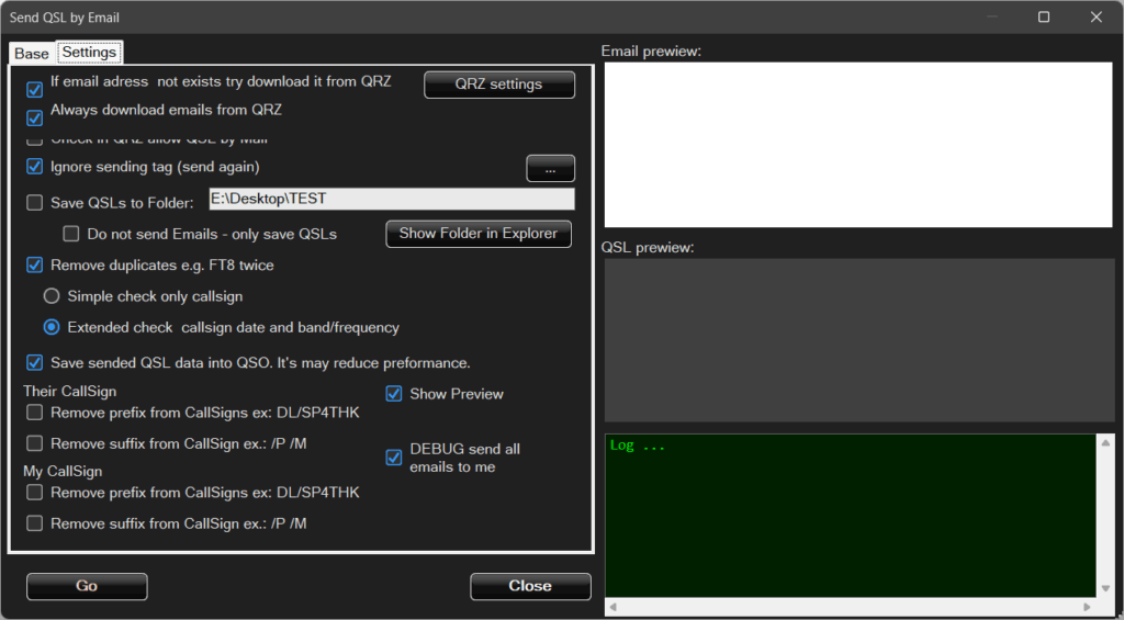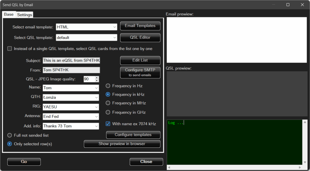 If the e-mail address is missing, try to retrieve it from QRZ and Always retrieve the e-mail address from QRZ – two self-explanatory options that complete or update the correspondent’s e-mail address using QRZ data.