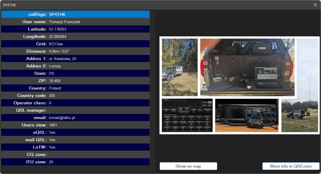 When retrieving data from QRZ, the program can also display additional information, such as the user’s QRZ profile photo.