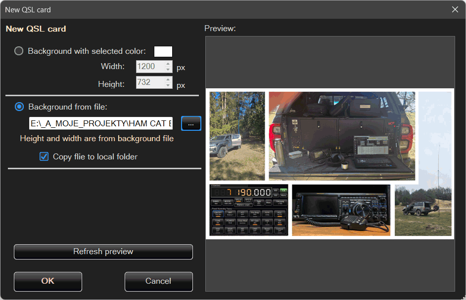 After selecting this option, a window will appear (with a QSL card already loaded).