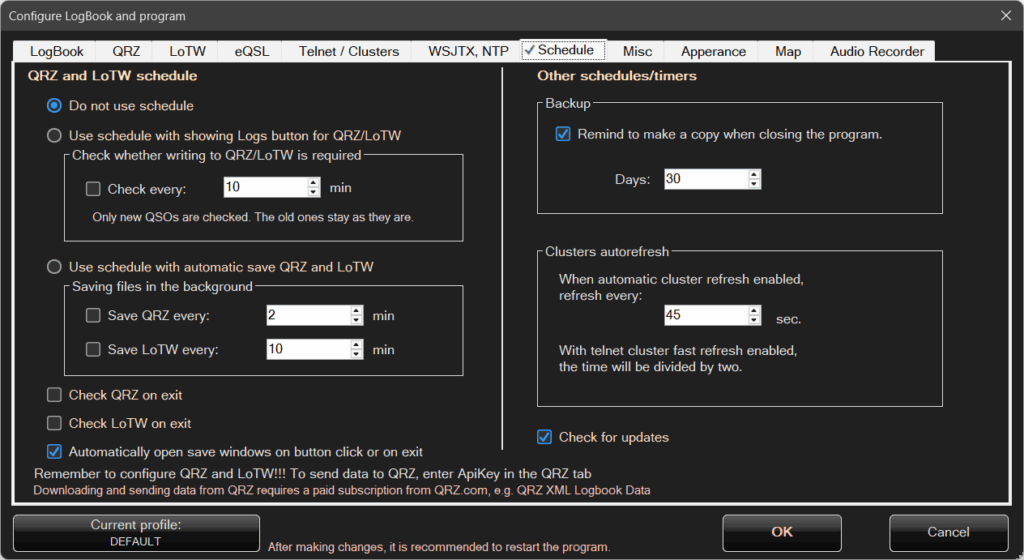 With this option enabled, the program will automatically upload data to QRZ and LoTW in the background at specified intervals.