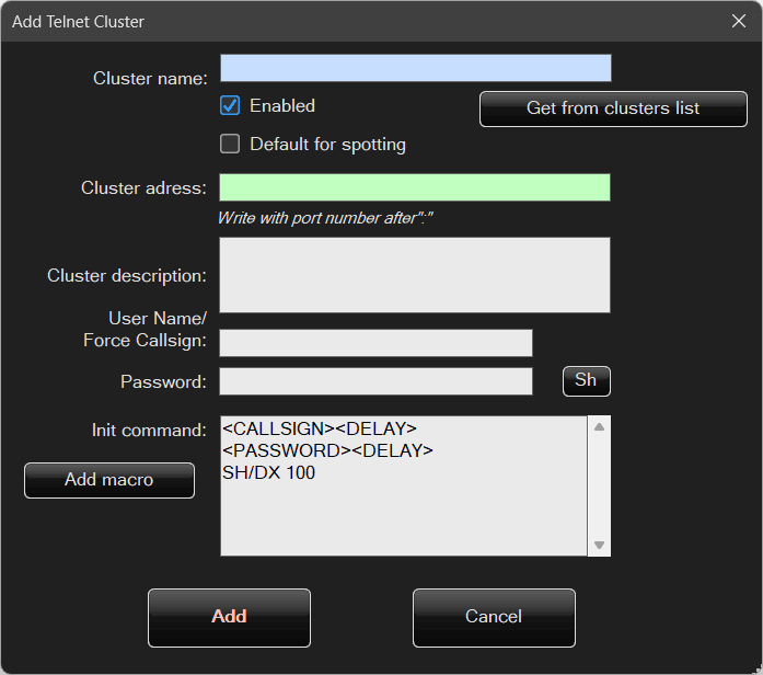 Additionally, if you want to send spots, the cluster usually requires user registration and a password.