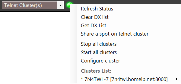 Additionally, each cluster in the list at the bottom has its own submenu: