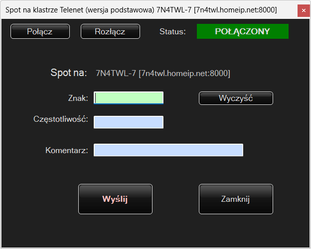 Gdy chcemy wysłać spot na klaster mamy dwie możliwości albo okno spotu jest prostym okienkiem gdzie wypełniamy dane i wysyłamy spot:
