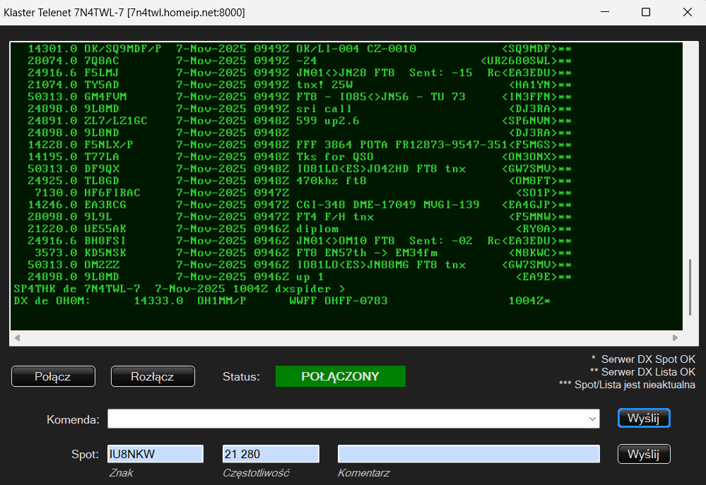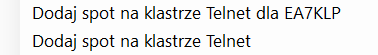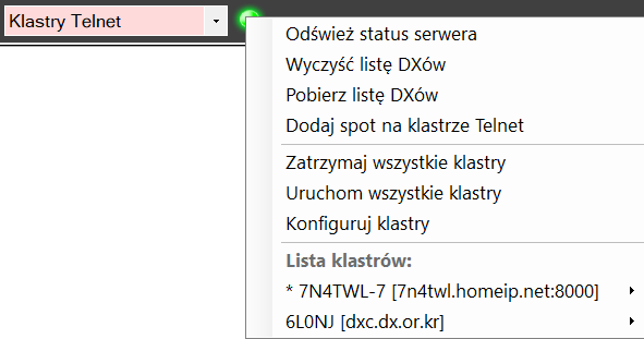 W głównym oknie LogBooka mamy pole wyboru Mój LogBook, i kolejno klastry POTA SOTA itd na samym końcu jest opcja Klastry Telnet po jej wybraniu obok pojawi się lampka.