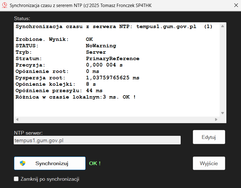 ⌚ Synchronizacja czasu z serwerem NTP przy starcie programu.
