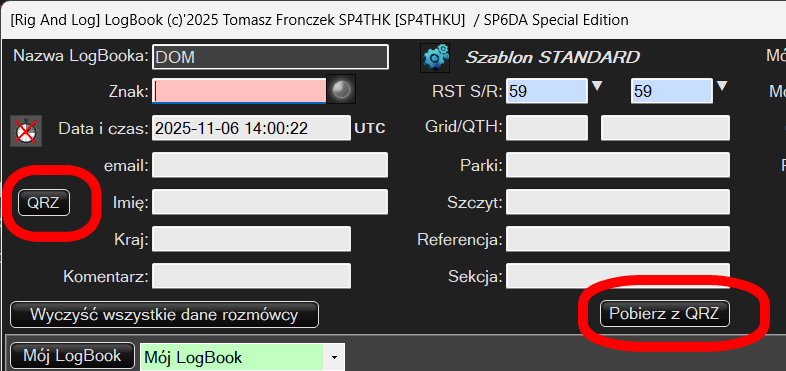 Przycisk Pobierz z QRZ jest intuicyjny – pobiera dane z QRZ.