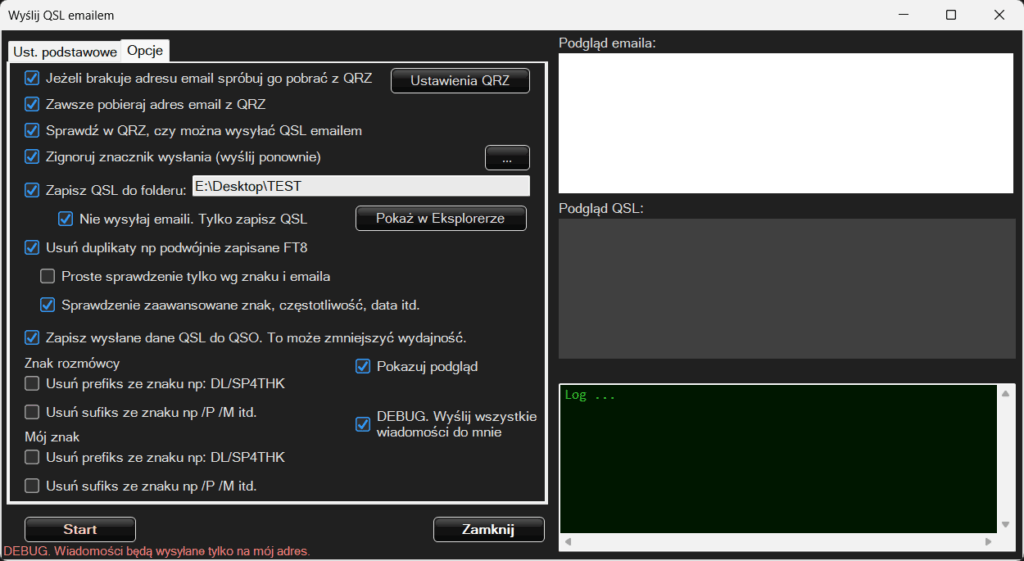 Pokazuj podgląd ma dwa tryby wyświetlania zależne czy zaznaczony jest zapis QSL do folderu czy nie.
