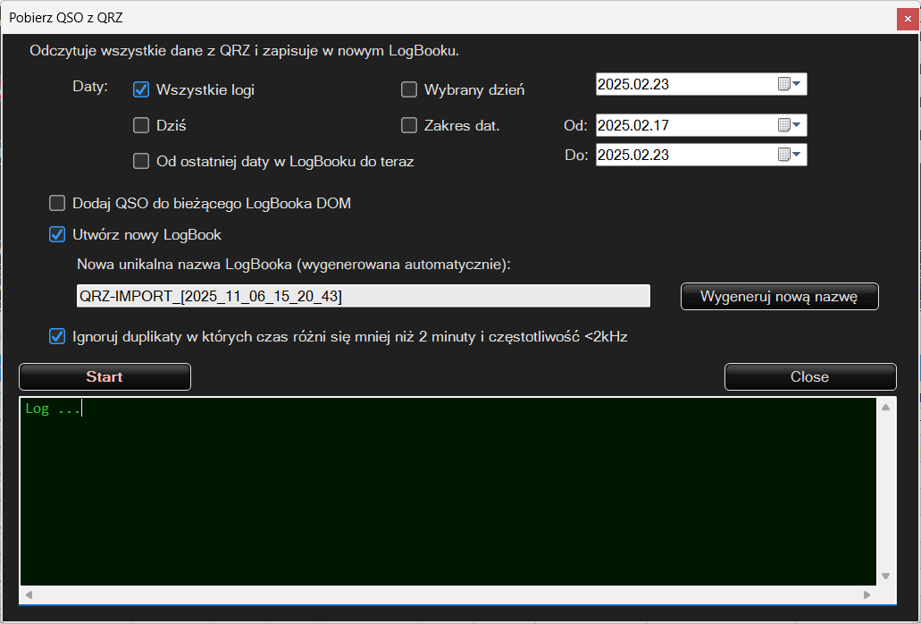 Import logów z QRZ: