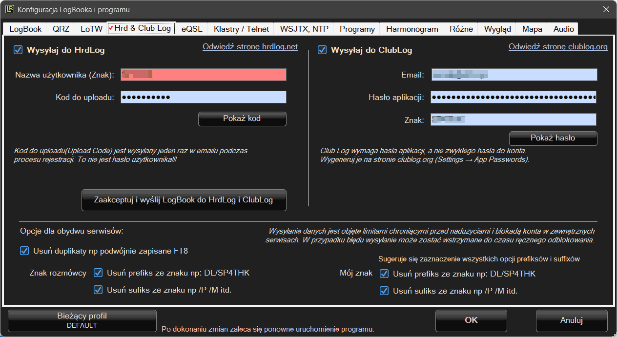 Tutaj kilkoma szybkimi klikami możemy wysłać QSO do wszystkich serwisów. Oczywiście z ograniczeniami opisanymi wcześniej.