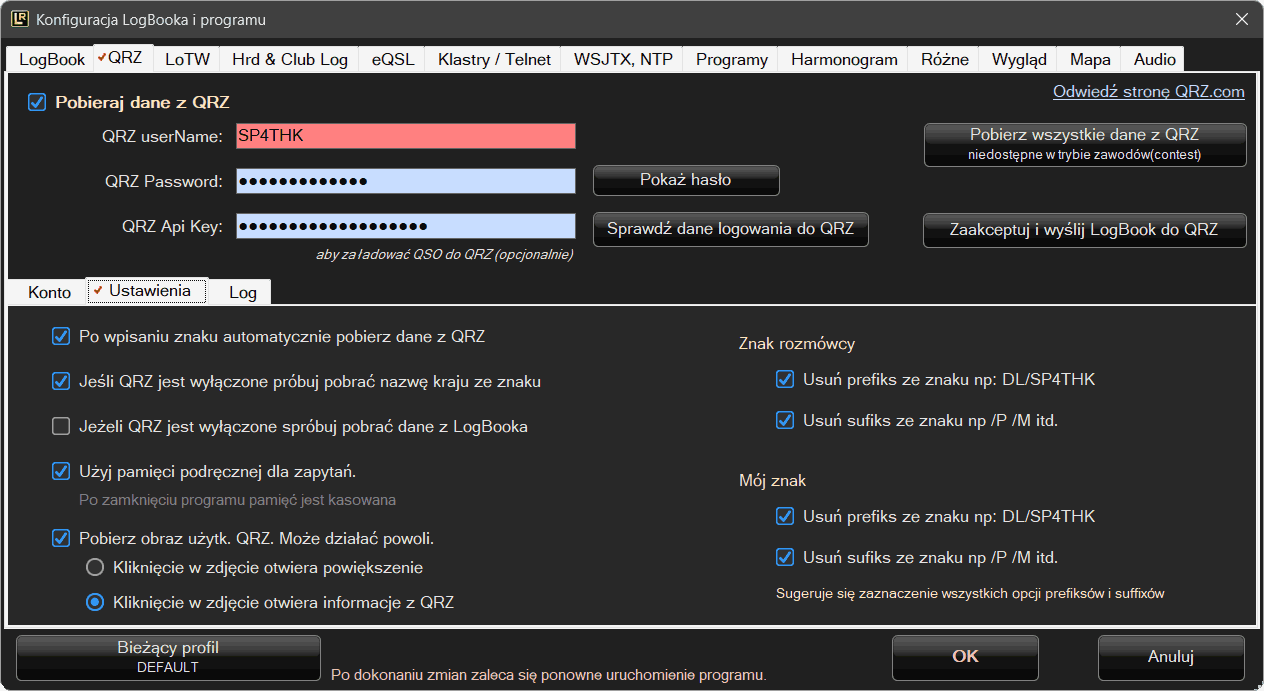 ⚙️ Konfiguracja QRZ: