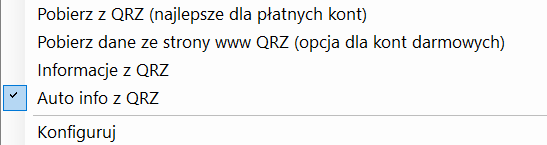 W tym celu należy kliknąć przycisk QRZ, a następnie z menu wybrać:
