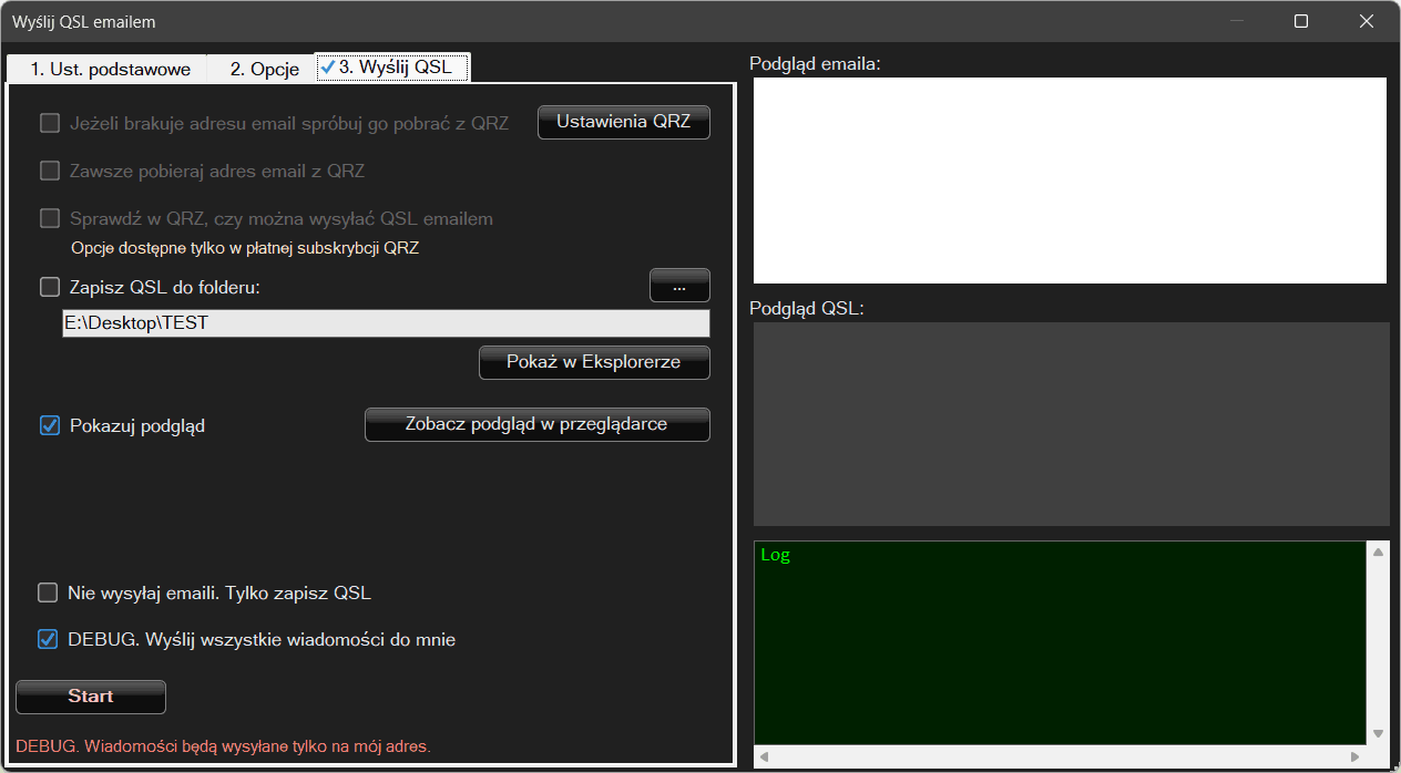 Sprawdź w QRZ czy można wysyłać QSL emailem– w QRZ są pola które użytkownik może zaznaczyć czy obsługuje i odbiera QSL pocztą. Jeżeli tego nie zaznaczył a program to sprawdza email z kartą QSL nie zostanie wysłany – widocznie ta osoba tego sobie nie życzy.