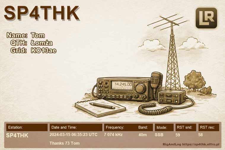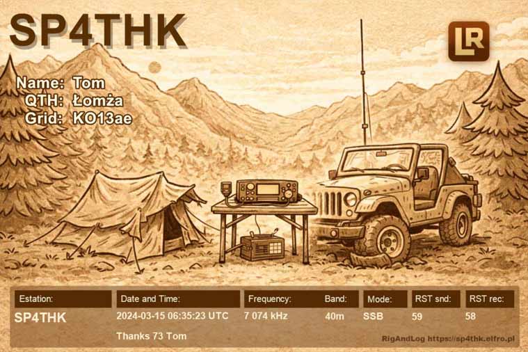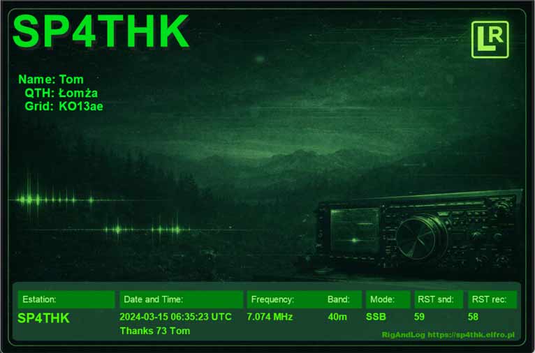 Przykładowe domyślne karty QSL: