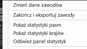 Na koniec zawodów zapisane łączności należy wyeksportować i wysłać do organizatora. Eksport można wykonać w dwóch formatach .