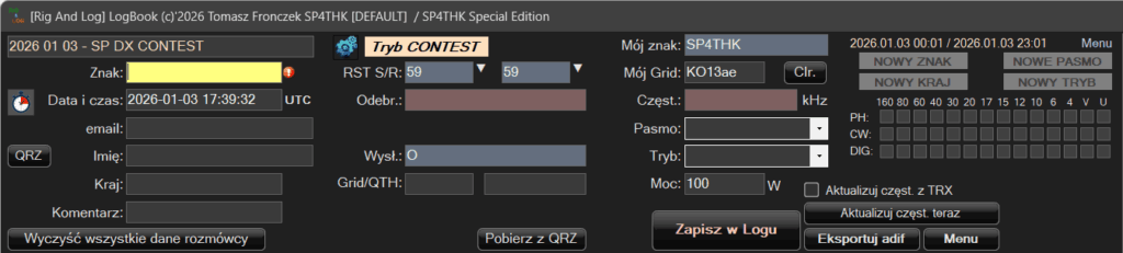 Można wybrać istniejące zawody z listy Nazwa LogBooka lub utworzyć Nowe zawody